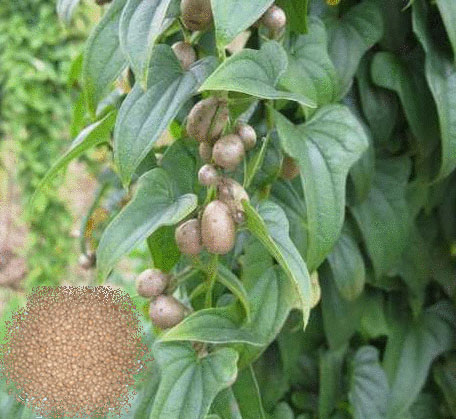 山藥在地下部分形成塊莖的同時,在地上部葉腋間著生很多的零余子。零余子是腋芽的變態(tài),也即側(cè)枝的變形,稱為地上塊莖,也叫氣生塊莖或株芽,普通稱為山藥豆。零余子呈橢圓形,長1-2.5厘米,直徑0.8-2厘米,褐色或深褐色,每667平方米產(chǎn)量可達200-600千克。