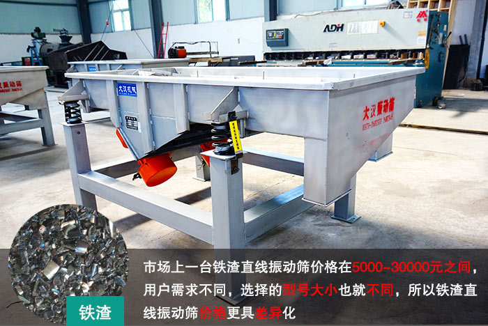 【鐵渣直線振動篩2019報價!!!!!】市場上一臺鐵渣直線振動篩價格在5000~30000元之間,用戶需求不同,選擇的型號大小也就不同,所以鐵渣直線振動篩價格更具差異化。