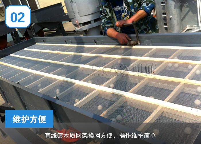 在使用直線篩木質網架對物料進篩分時不影響物料特性,保證了篩分過程物料的品質。同時它還可以添加彈跳球,增加透網率,有效防止篩網堵塞,適合粉狀物料的篩分。