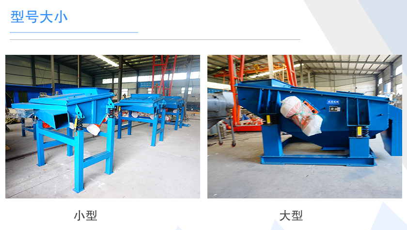 直線篩型號主要有DZSF515、DZSF520、DZSF525、DZSF1020、DZSF1025、DZSF1030,不同型號的直線篩,其篩面寬度和長度是不一樣不同的,型號越大,篩面面積就越大,處理量也就越大,同樣其價格也會越貴。